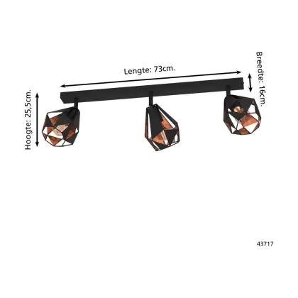 Eglo Deckenleuchte Carlton 7 Stahl Schwarz Bernstein | IP20 - Geeignet für 3x E27
