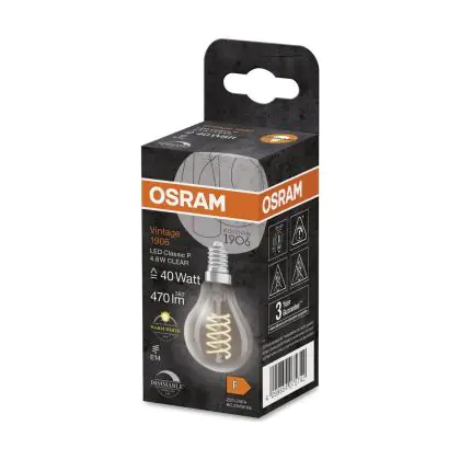 Osram Vintage 1906 LED Classic E14 Birne Fadenlampe Klar 4.8W 470lm - 827 | Dimmbar - Ersatz Für 40W