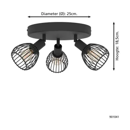 Eglo Plafonnier Sonni Échantillon Noir | IP20 - Convient pour 3x E14