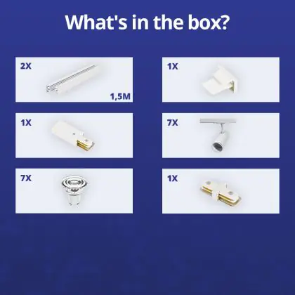| Nom du fabricant | Complete Straight 3-meter 1-Phase Track Set White incl. 7x Spot fixture + GU10 2700K 3W Dim – 2x 1.5 | |