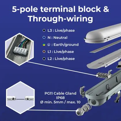 La réglette LED, Lot 4x Réglette LED Étanche V3.0 10-18W 1300-2520lm - 830-865 CCT | 60cm - Câblage Traversant (5x2.5mm2) est conçue pour remplacer les réglettes TL-D traditionnelles et permettant d’économiser jusqu’à 50% d’énergie. Très souvent utilisé pour l’éclairage d’entrepôts, d’usines, de parking et d’autres grands espaces extérieurs. Très simple d’installation, cette réglette de 60cm peut se fixer au plafond et au mur et projette 3000K - 4000K - 6500K CCT, comme couleur de lumière. La Lot 4x Réglette LED Étanche V3.0 10-18W 1300-2520lm - 830-865 CCT | 60cm - Câblage Traversant (5x2.5mm2) dispose d’un indice de protection IP65 – Résistant à la poussière et à l'eau (jets d'eau) à l’eau et la poussière et d’une résistance aux chocs IK10.
