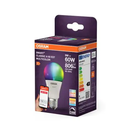 Cette ampoule Osram Smart+ Classic LED E27 Poire Dépolie Multicolour RGBW 9W 806lm - 827-865 Accordable Blanc | Zigbee Dimmable - Remplacement 60W est l’alternative idéale pour la remplacement de votre ampoule classique de 60 W. La technologie LED intégrée vous offrira de nombreux avantages. Les ampoules à incandescence traditionnelles ont une durée de vie limitée. Cette alternative LED vous permettra de profiter d’un éclairage durable et fiable.