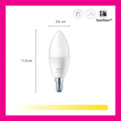 Cette ampoule Pack duo 2x WiZ Smart LED E14 Bougie Dépolie 5W 470lm | Meilleur Rendu De Couleur - Dimmable - Remplacement 40W est l’alternative idéale pour la remplacement de votre ampoule classique de 40 W. La technologie LED intégrée vous offrira de nombreux avantages. Les ampoules à incandescence traditionnelles ont une durée de vie limitée. Cette alternative LED vous permettra de profiter d’un éclairage durable et fiable.